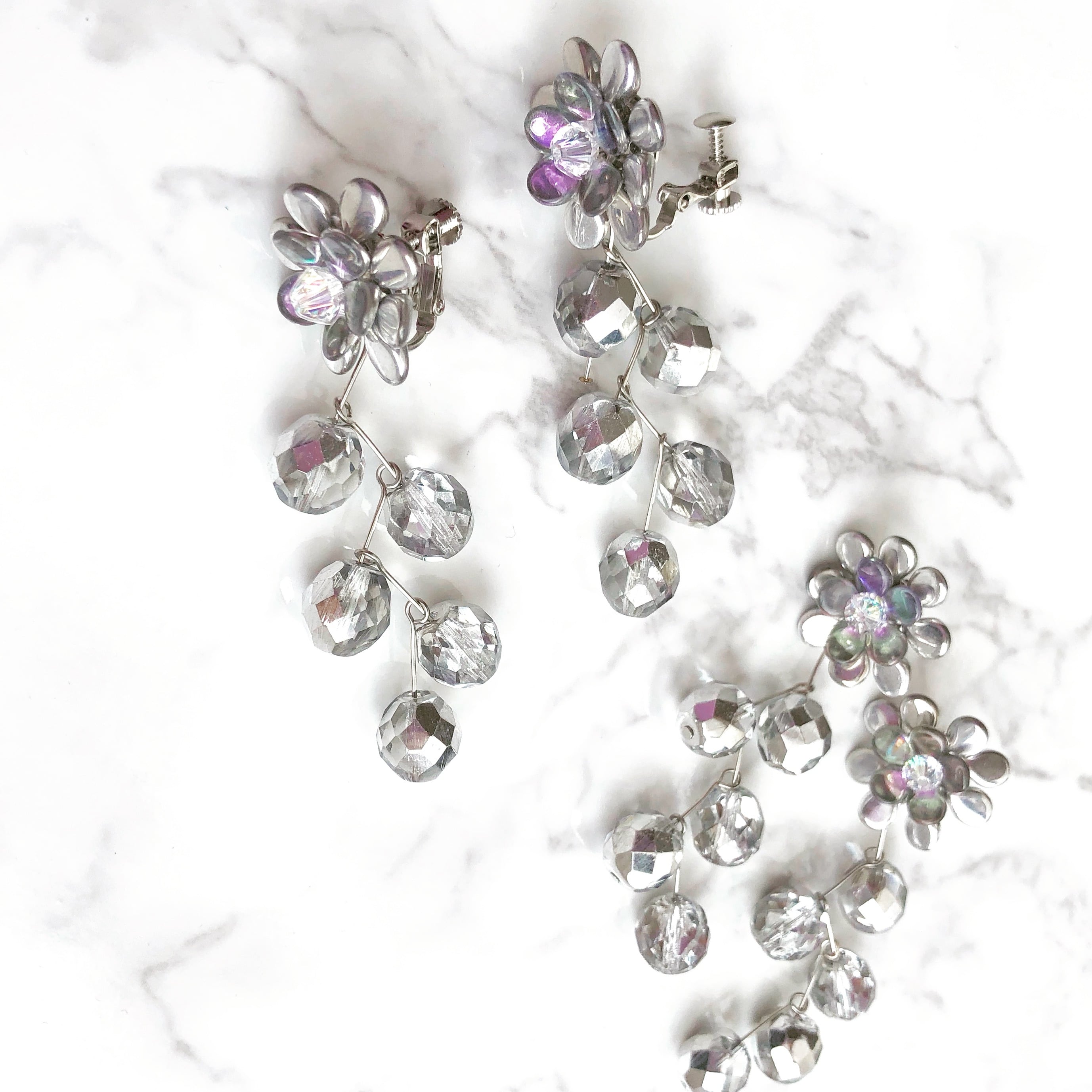 #ウエディング #花 #シルバー #夏 #マリン #お呼ばれ #スワロフスキー #キラキラ #透明 #揺れるピアス #揺れるイヤリング #大ぶり