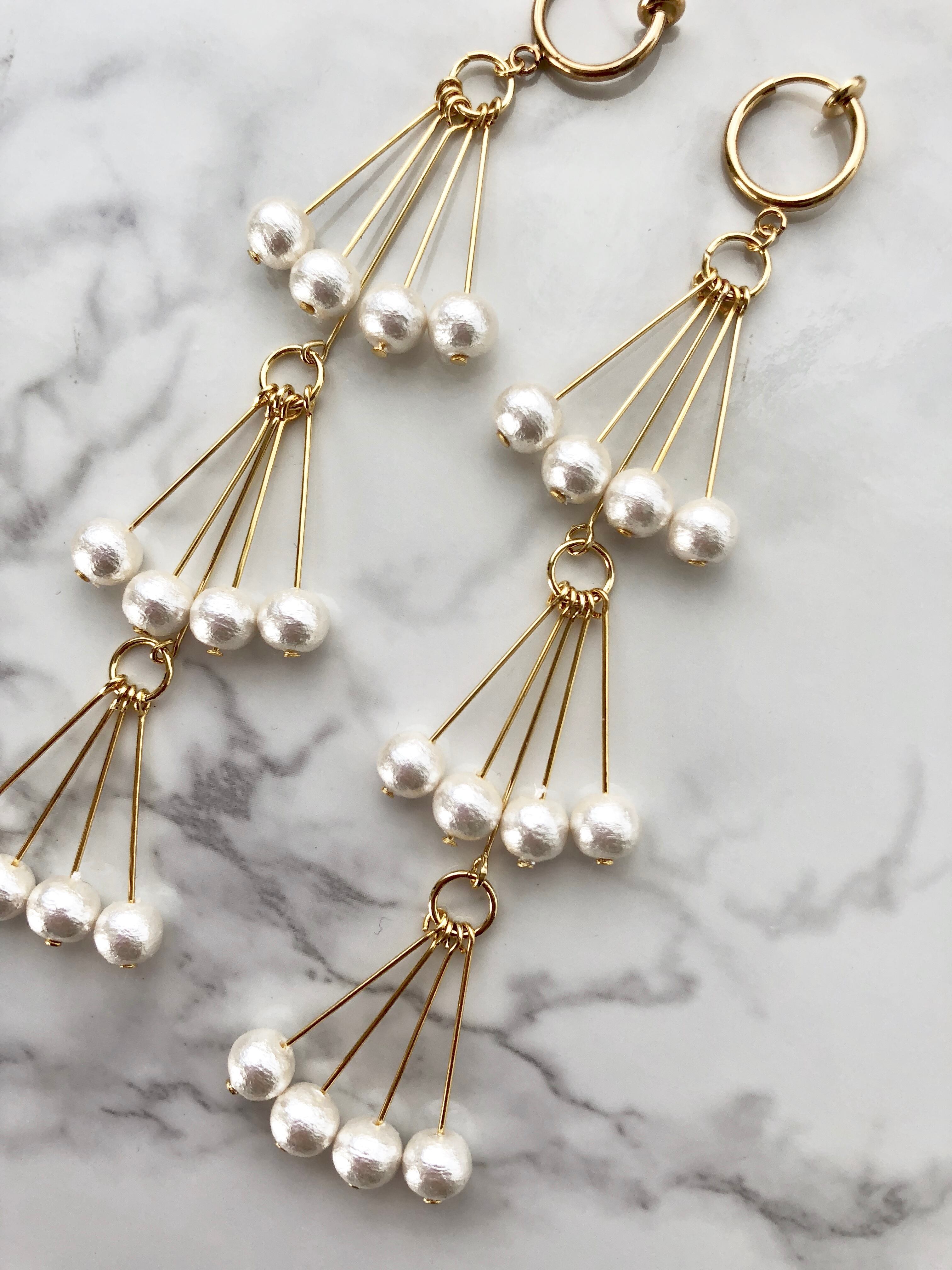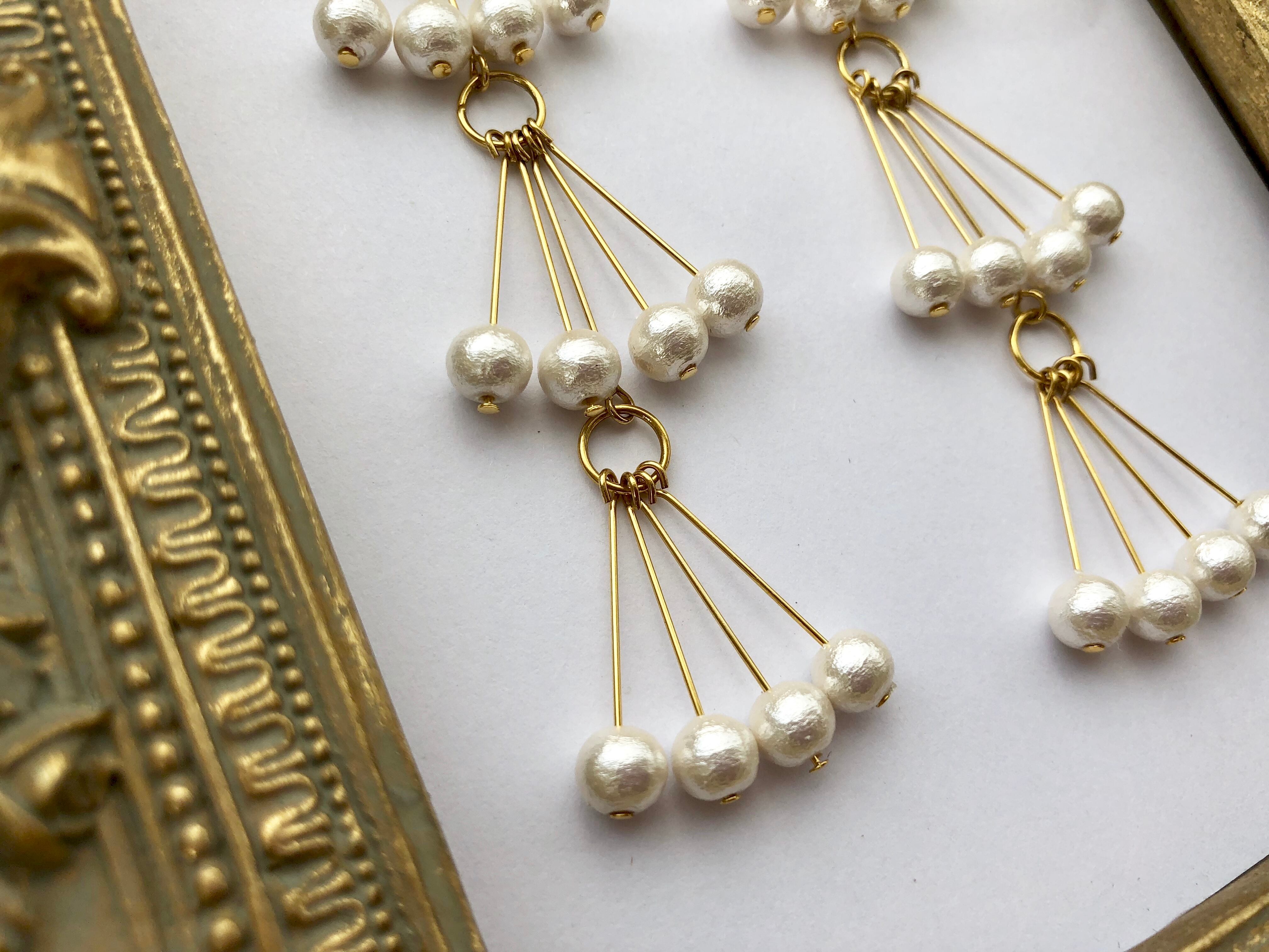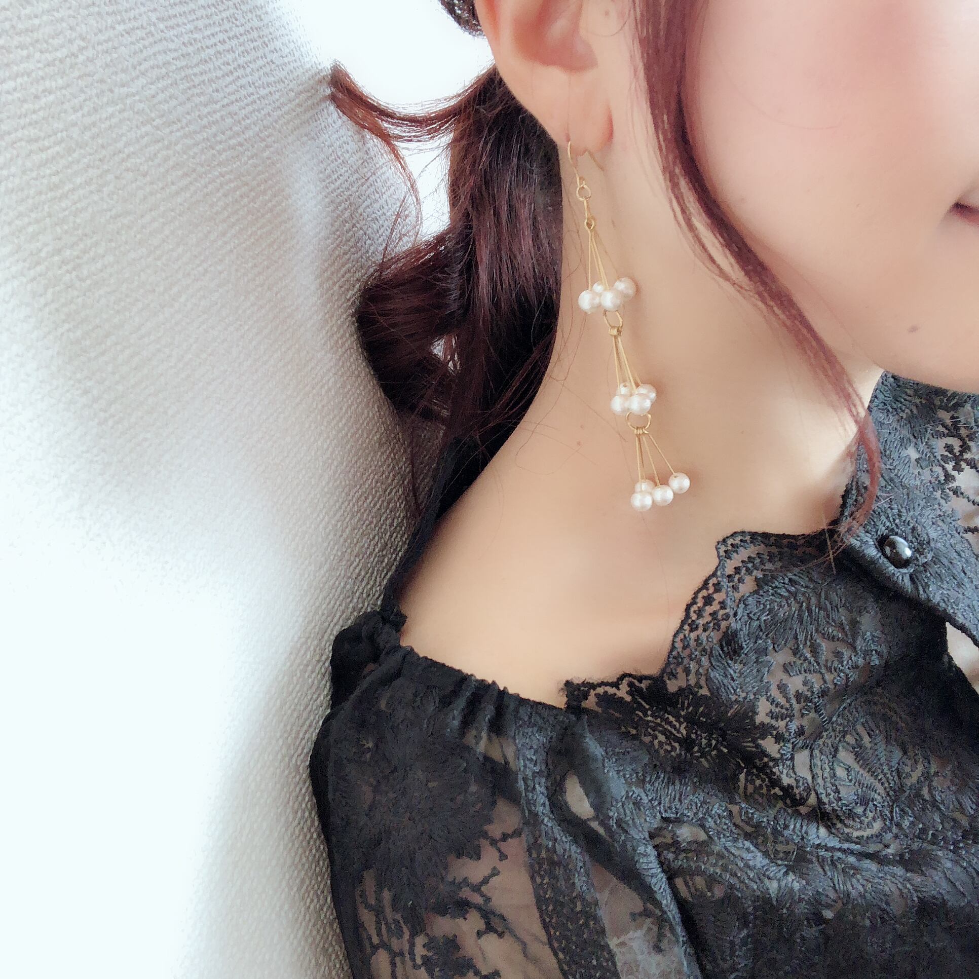 Amusant♪コットンパールロングタッセル ピアス/イヤリング