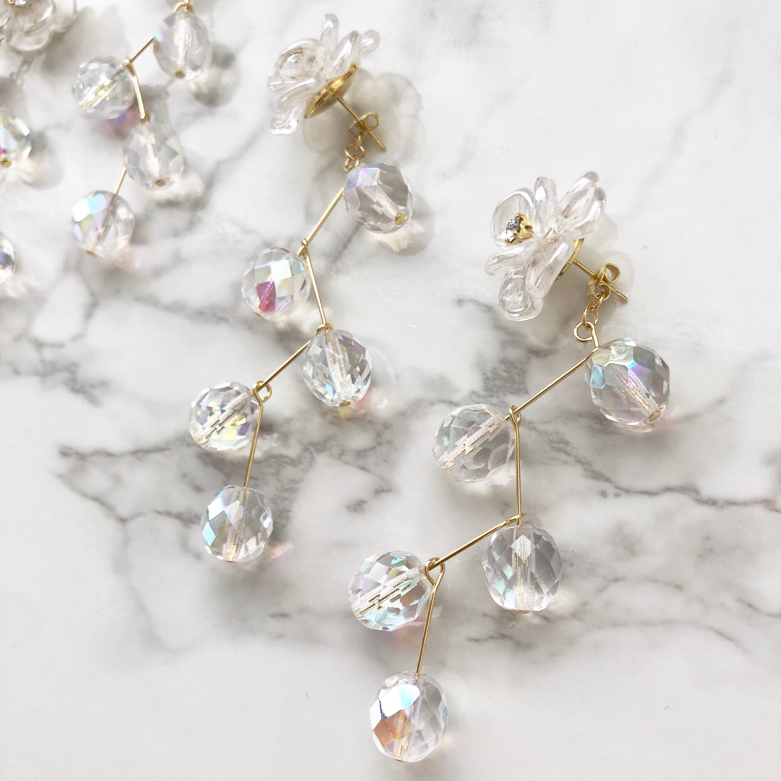 Joli Jolie チェコガラススノークリア お花の耳飾り/オーロラの雫