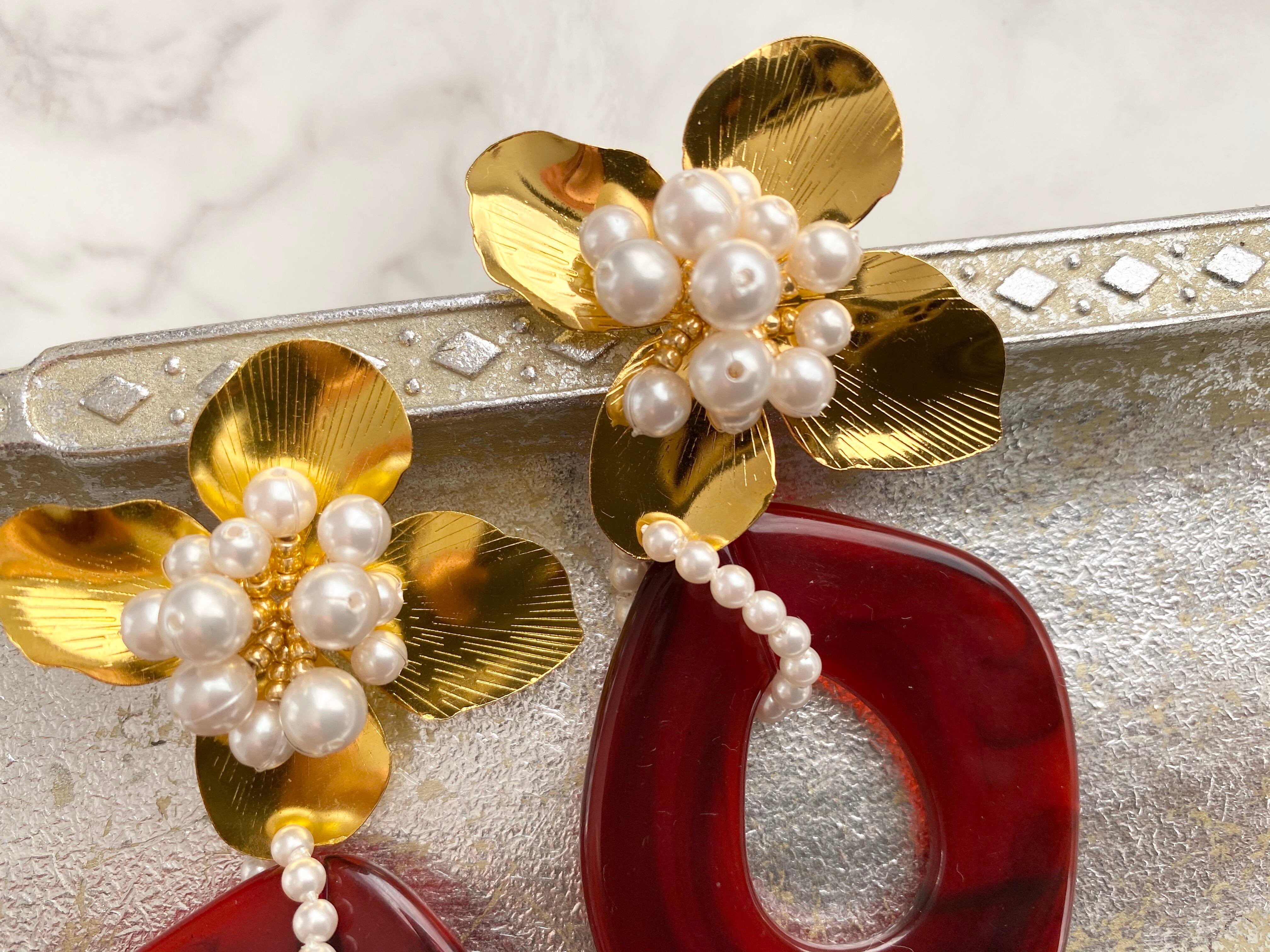 #2020新春 #2020新作 #赤 #べっ甲 #ゴールド #花 #お花 #パール #大振り #大ぶり #女子会 #新年会 #イベント #バレンタイン #クリスマス #ハロウィン #お呼ばれ #およばれ #華やか #特集掲載 #ウエディング #結婚式 #結婚パーティー #入園 #入学 #謝恩会 #インスタ映え #sns映え #写真映え #個性的
