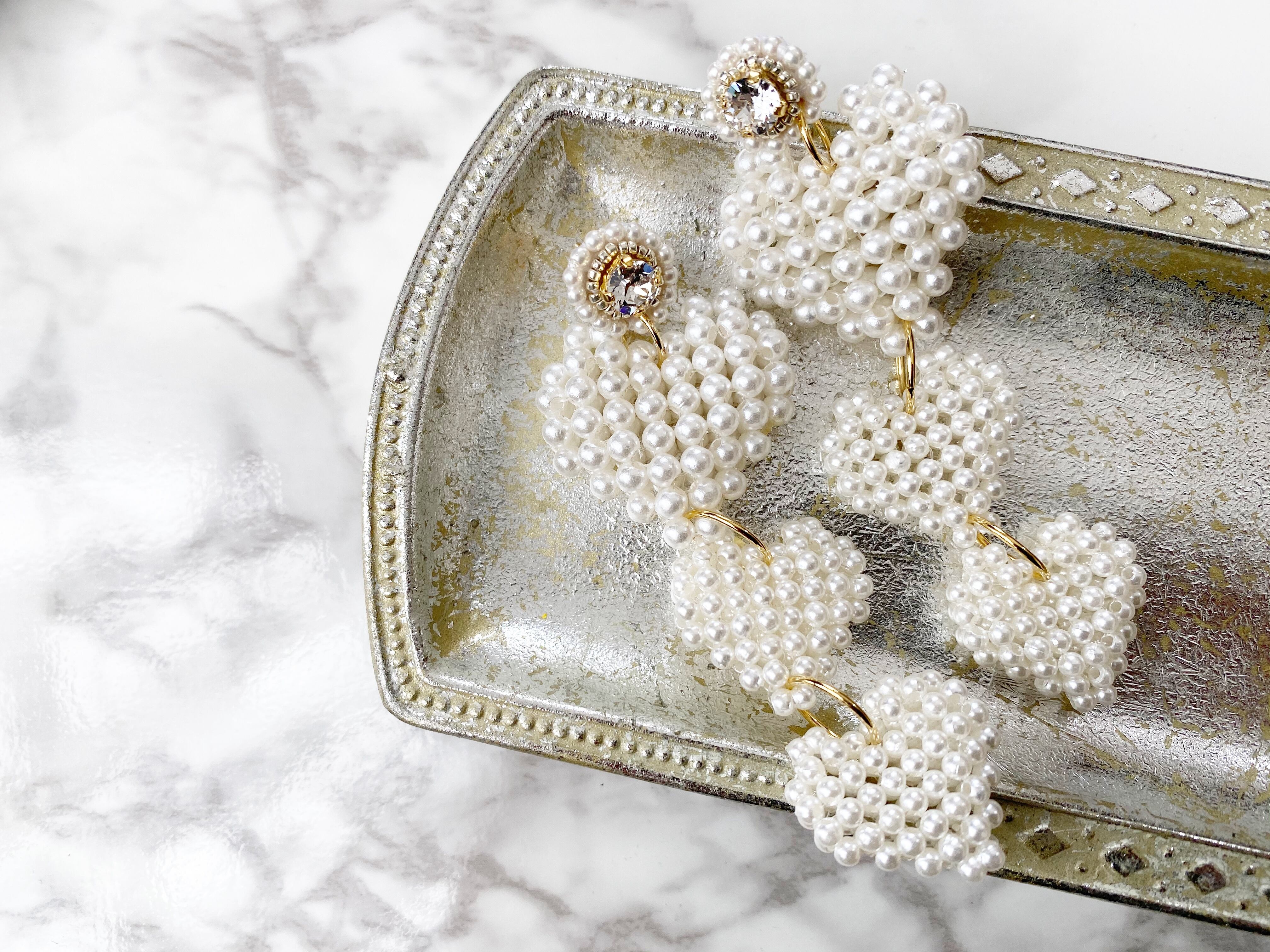 パールビーズで作られたハートのモチーフはとても軽いつけ心地です♡
