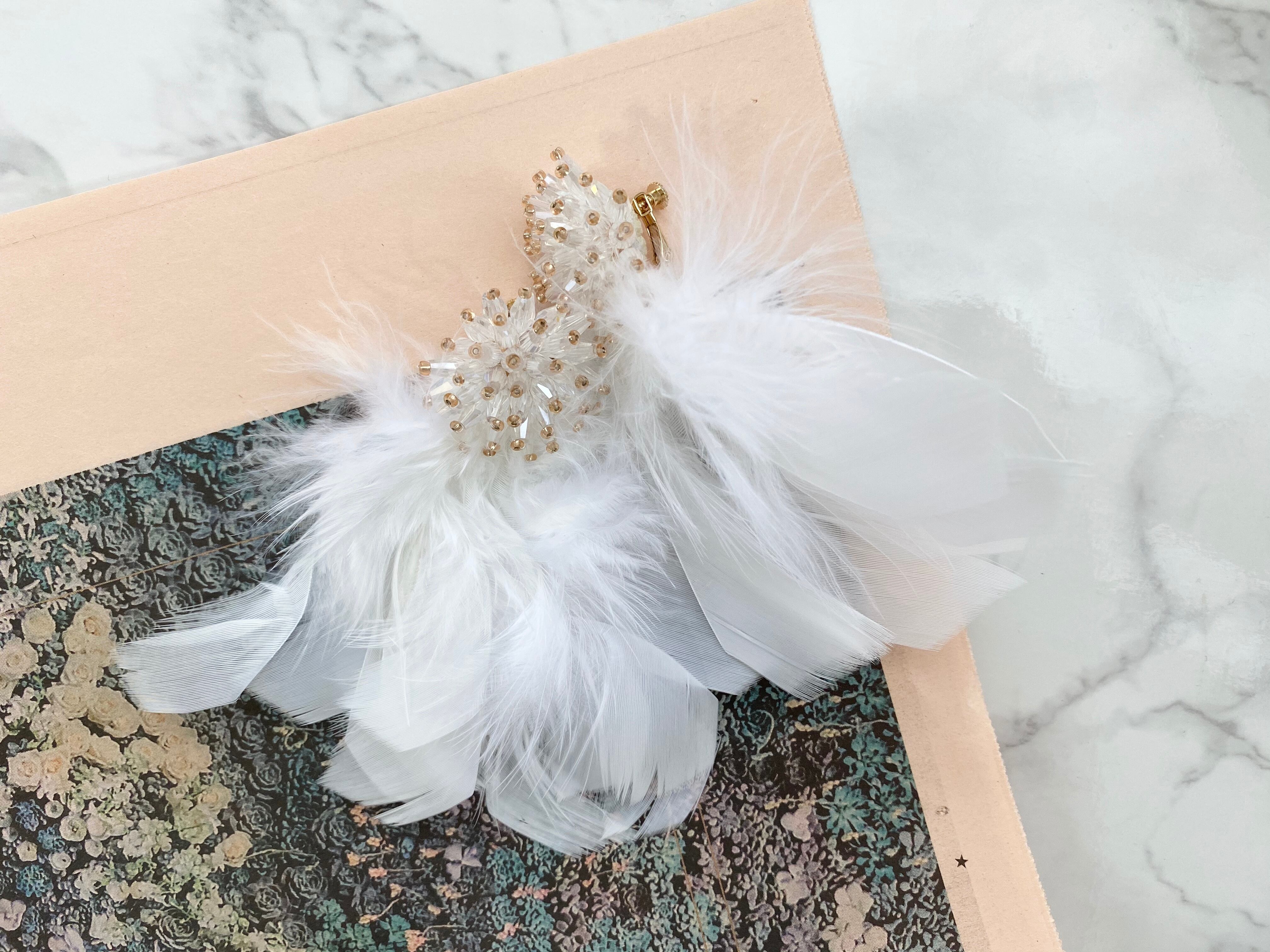 "翼"のようにボリューム感たっぷりのフェザーをあしらったピアス/イヤリングです♪