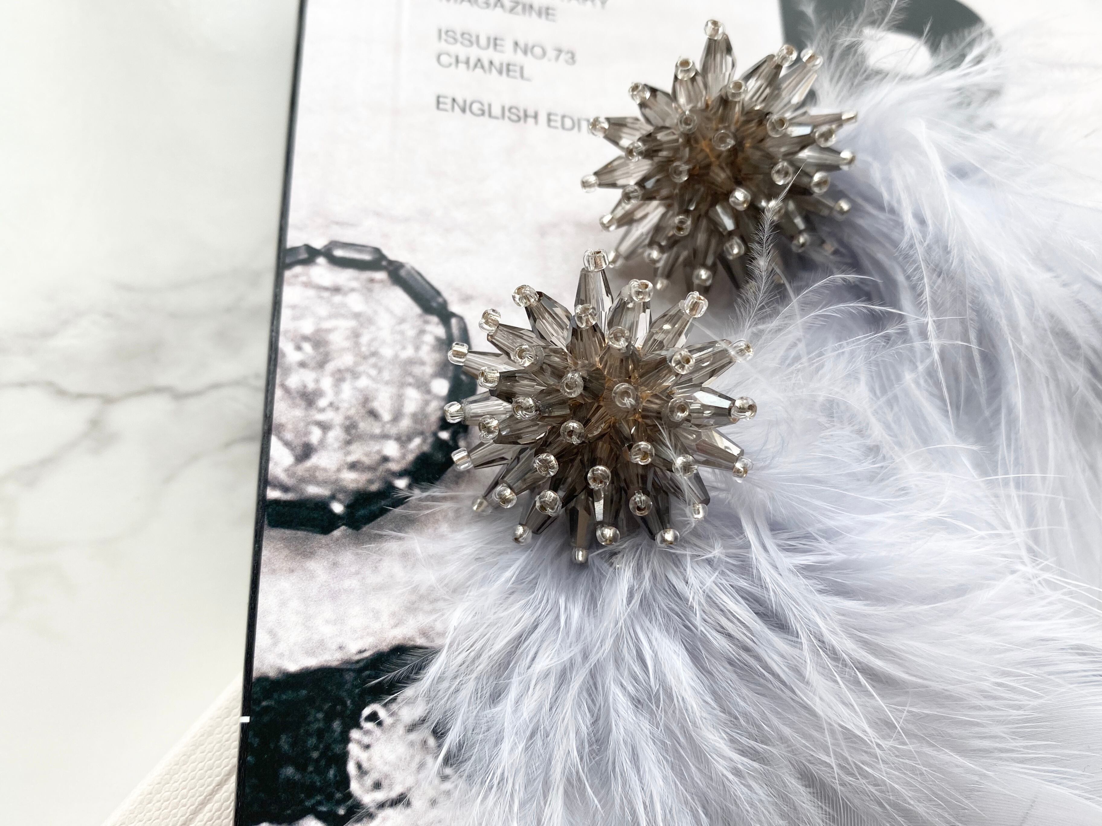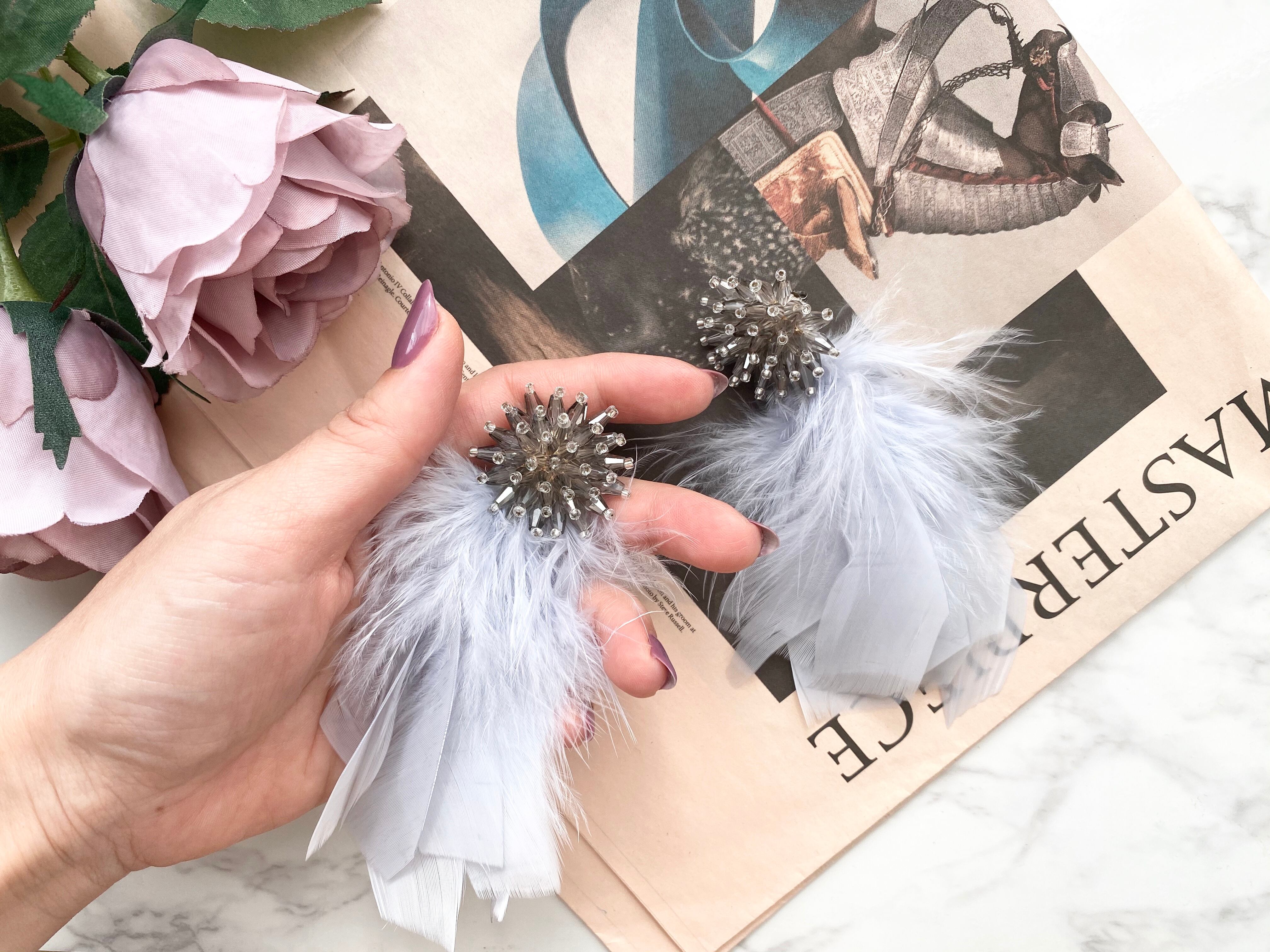 【Plume】〔Gray〕煌めくボリュームフェザー ピアス/イヤリング