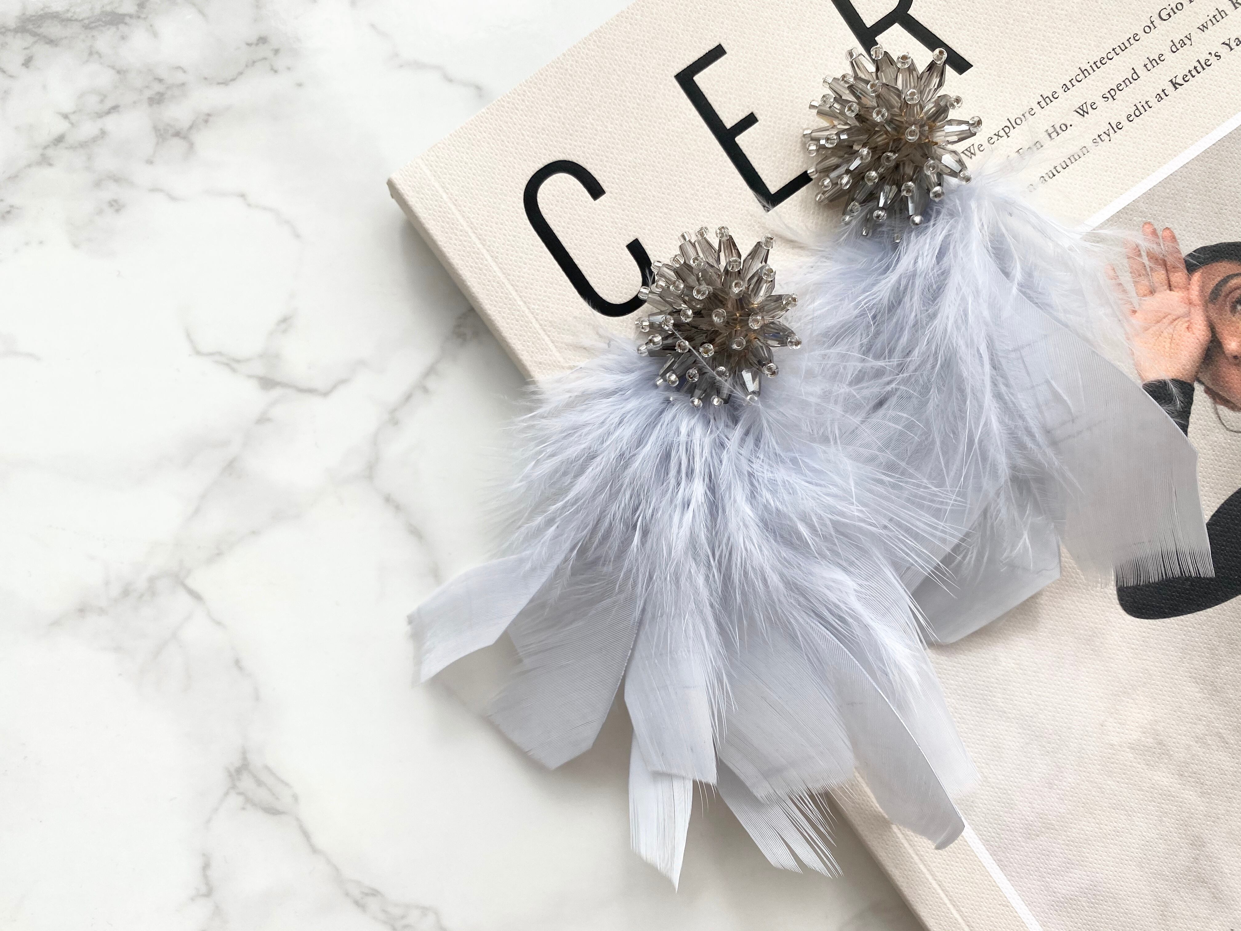 "翼"のようにボリューム感たっぷりのフェザーをあしらったピアス/イヤリングです♪