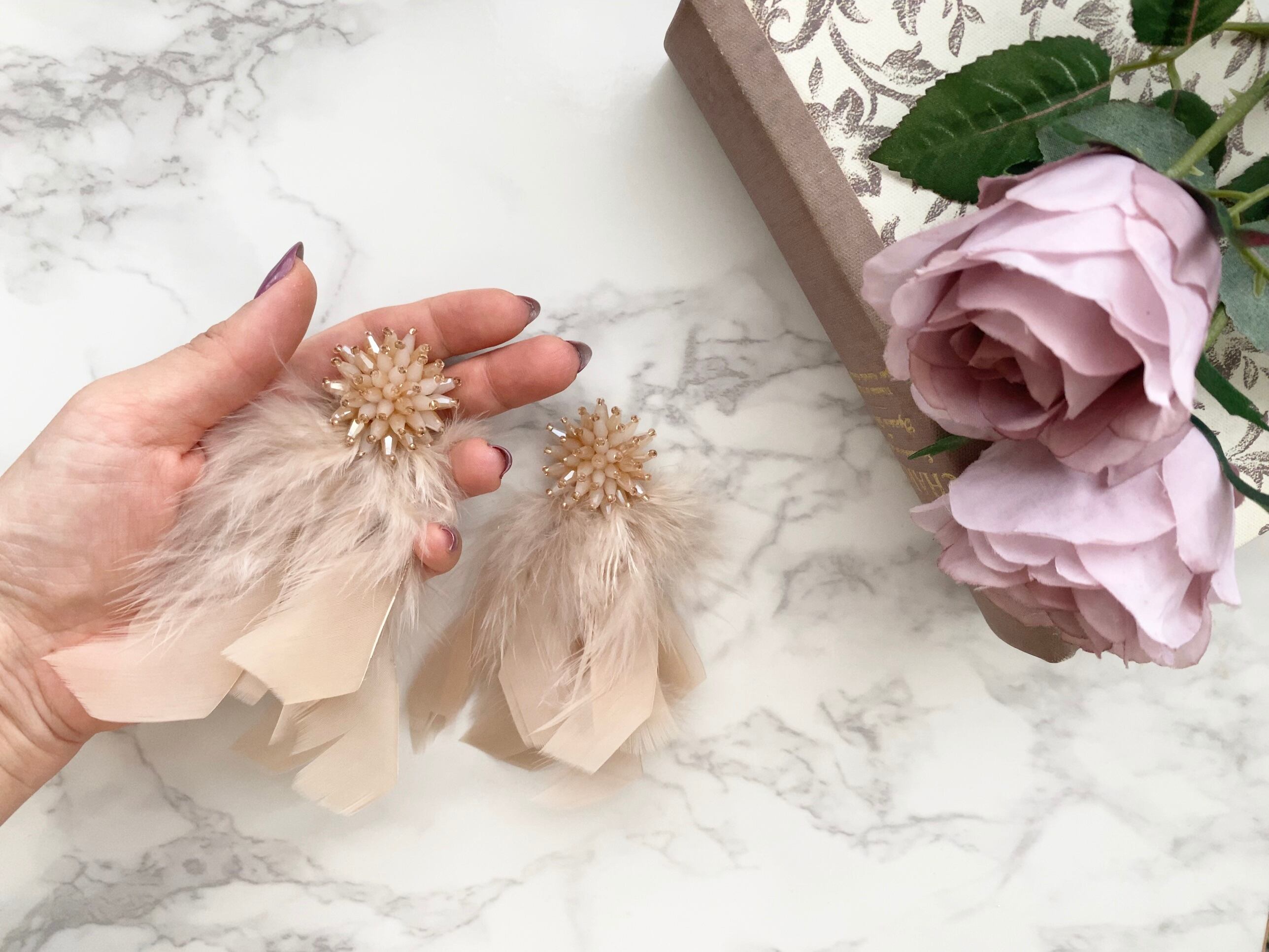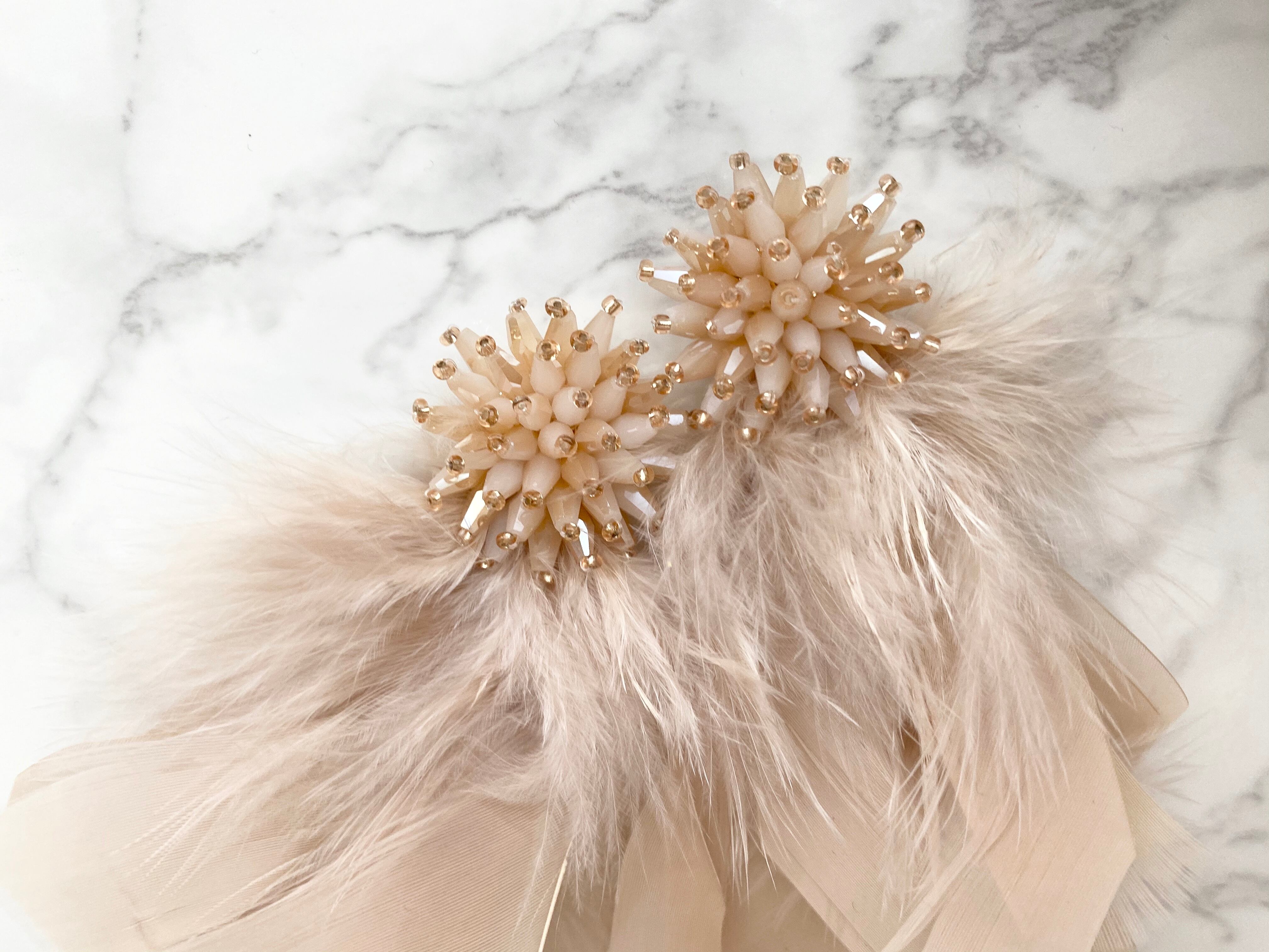 予約⭐︎【Plume】〔beige〕煌めくボリュームフェザー ピアス/イヤリング