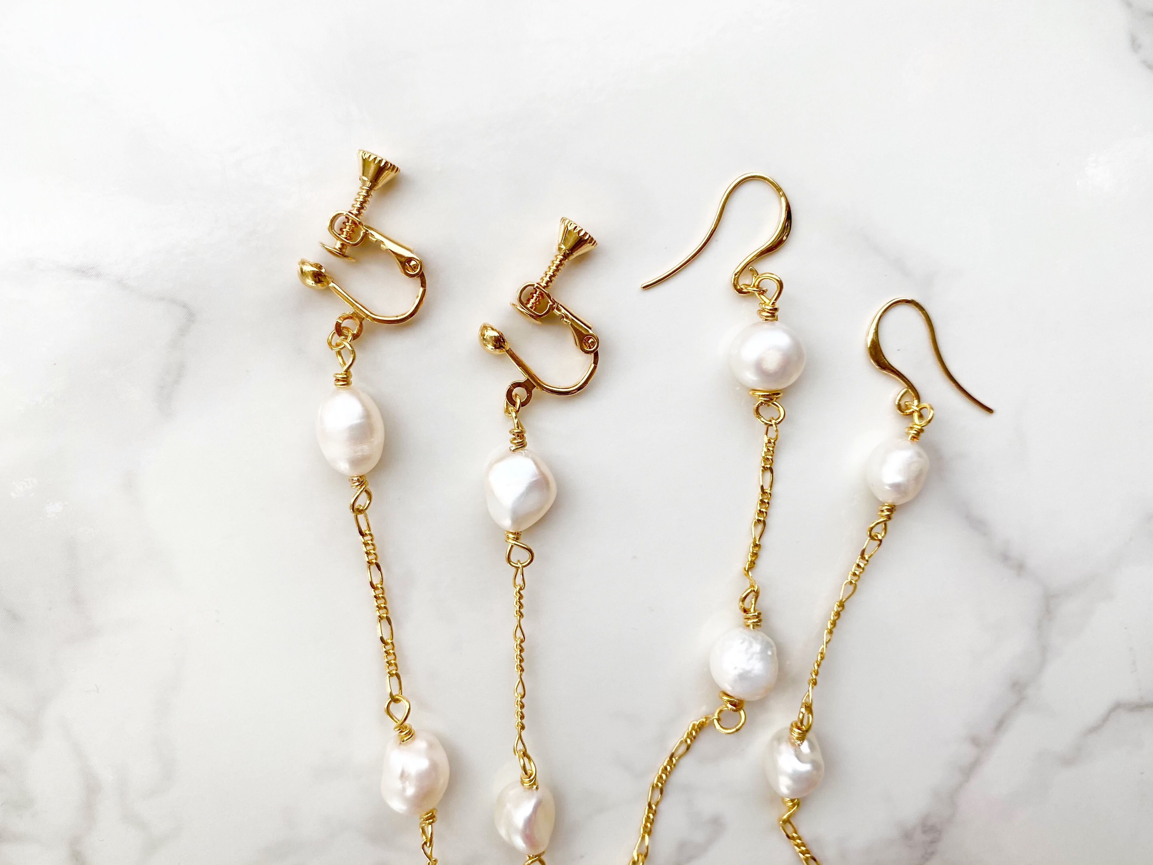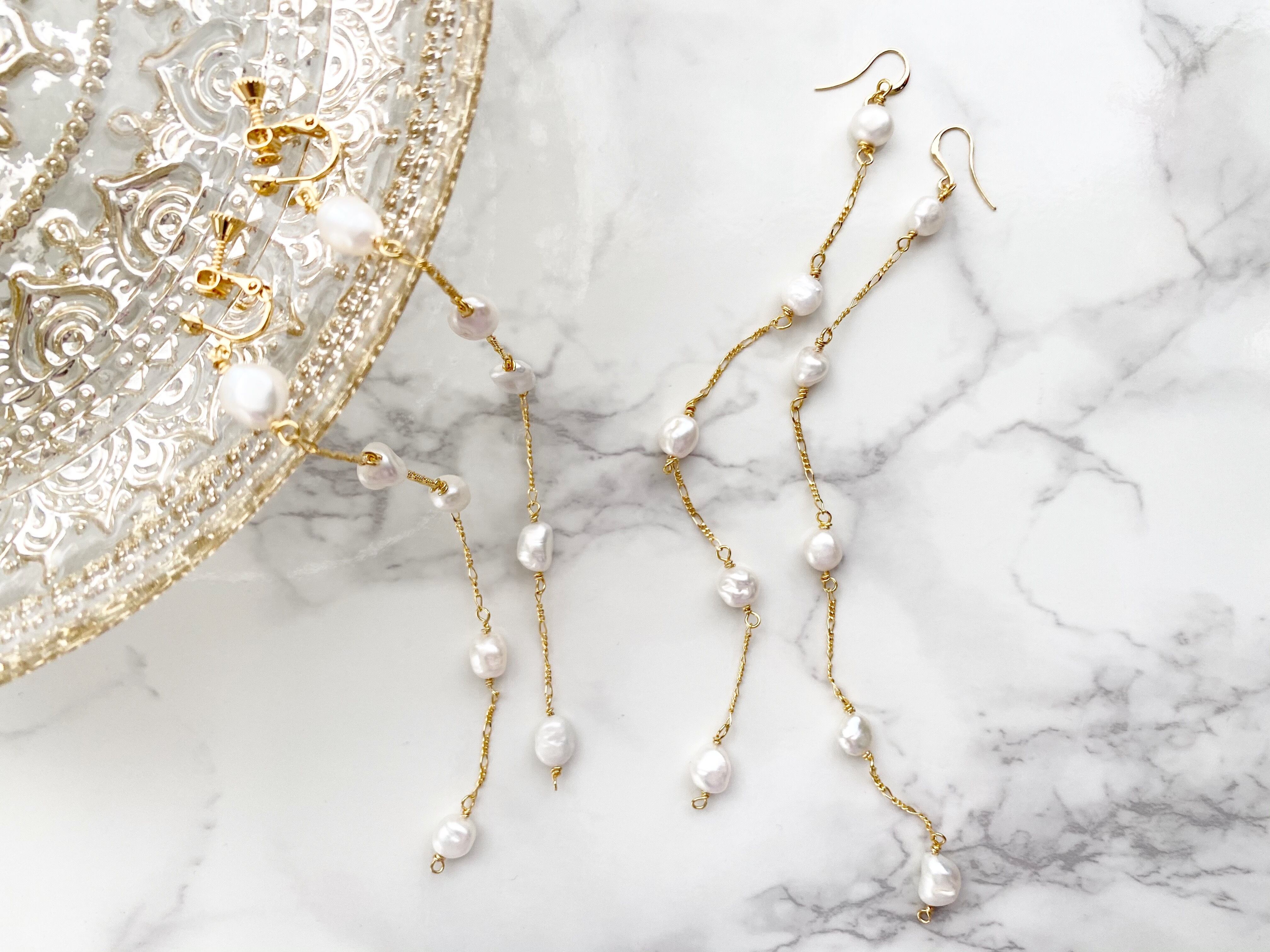 素材:淡水パール、チェーン他金具全て金属(16金コーティング)