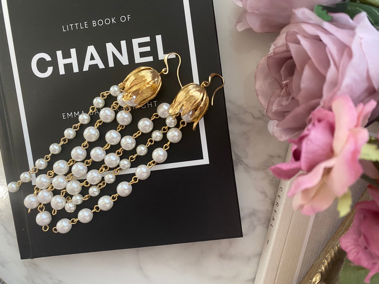 長めにデザインしたパールタッセルが首元まで華やかに!