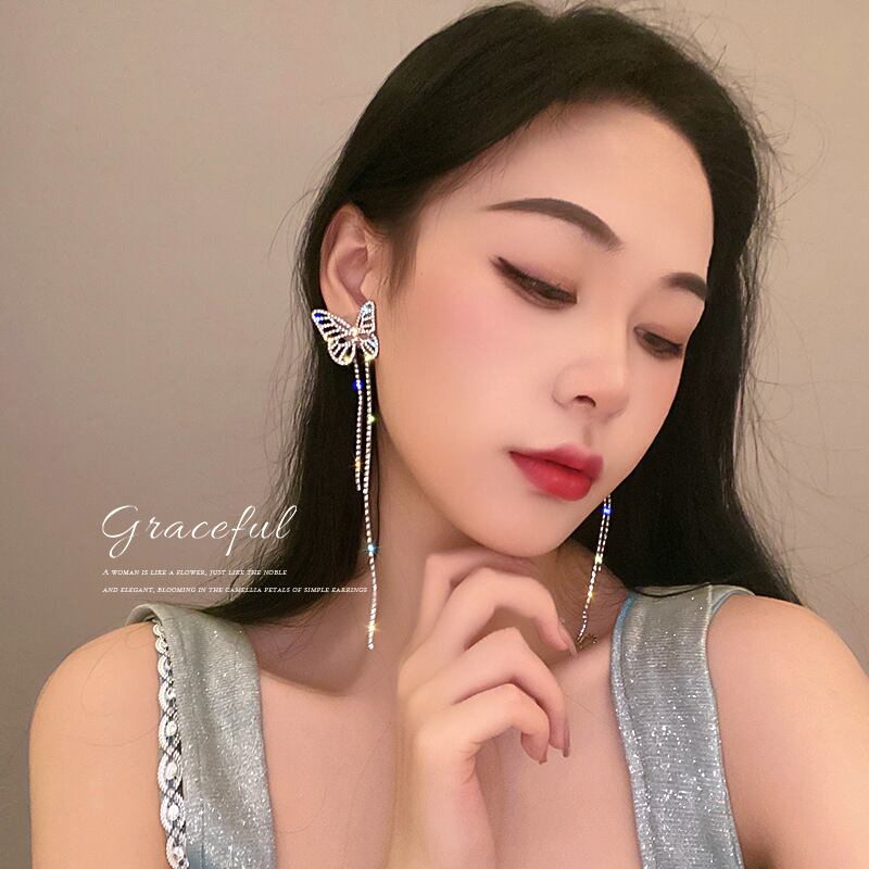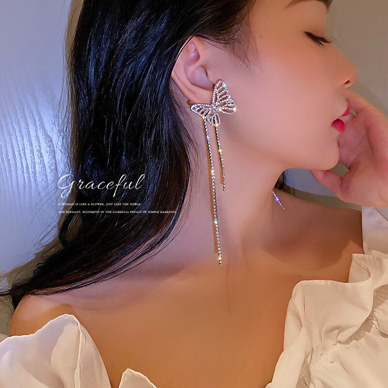ラインストーンが施された蝶が華やかな2wayでお楽しみいただけるピアスです♪
