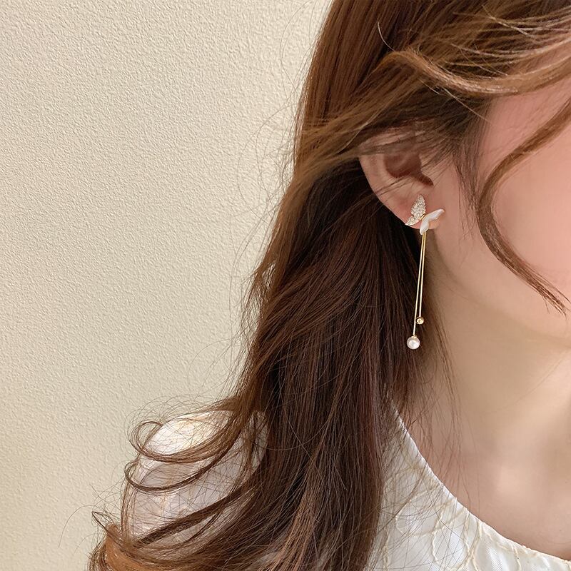 Butterfly long chain pearl pierce